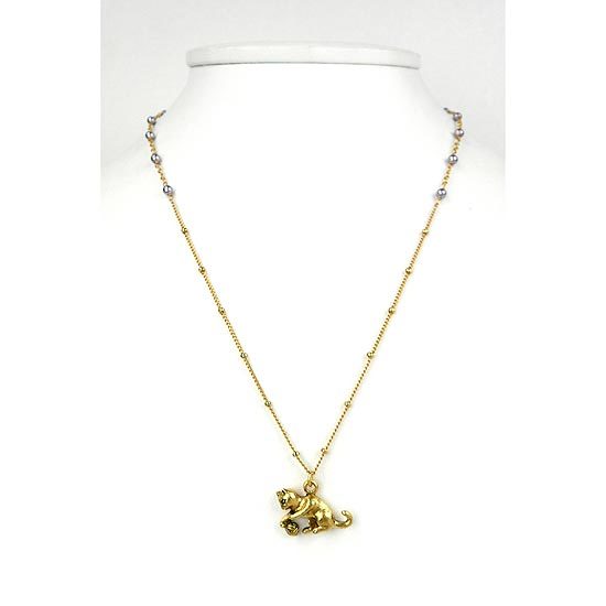 活潑可愛的貓咪墜飾,鍊身採兩段式設計,以細緻的合金鍊結合水晶珍珠點綴\,散發出法式甜美女孩風格的貓咪頸鍊,讓人一眼就愛上。