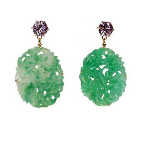 兼具現代、古典風格的中式翡翠雕花耳環,呈獻迷人優雅的韻味…。