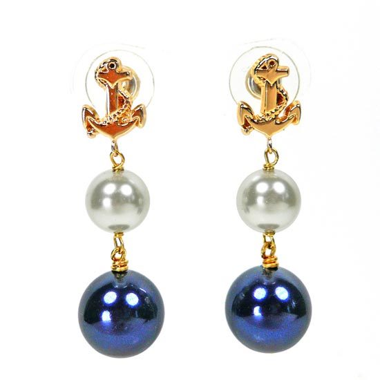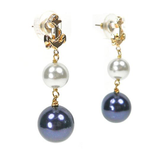 耳環以簡約、百搭的海軍風為主題,耳針採海軍標誌─船錨設計,下方並綴以大小不等的銀黑、白兩色的水晶珍珠,珍珠採垂墜設計,隨著擺動散發率性、迷人的魅力,無論是率性打扮或甜美俏麗風格皆可做搭配,是您不可或缺的夏日海軍風經典單品。