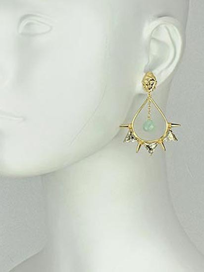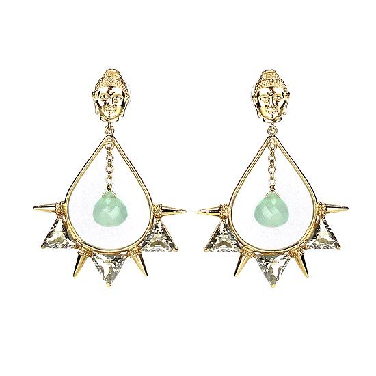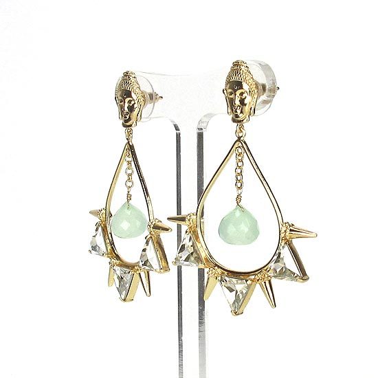 佛頭墜飾下方垂墜放射狀排列的閃耀爪鑲水晶、鉚釘及玉石,華麗中帶點獨特的搖滾龐克風,配戴起來十分有個人特色!