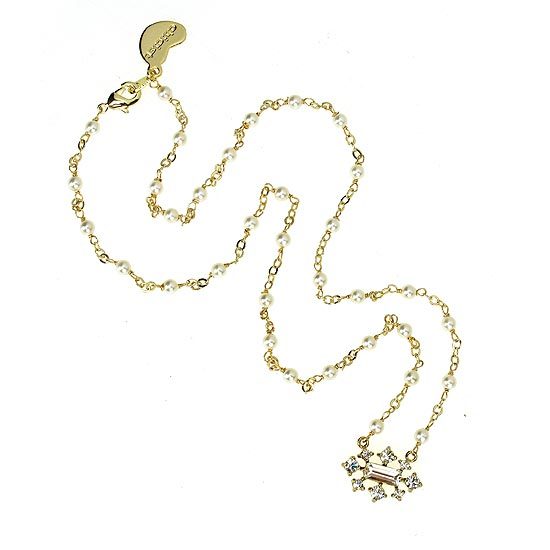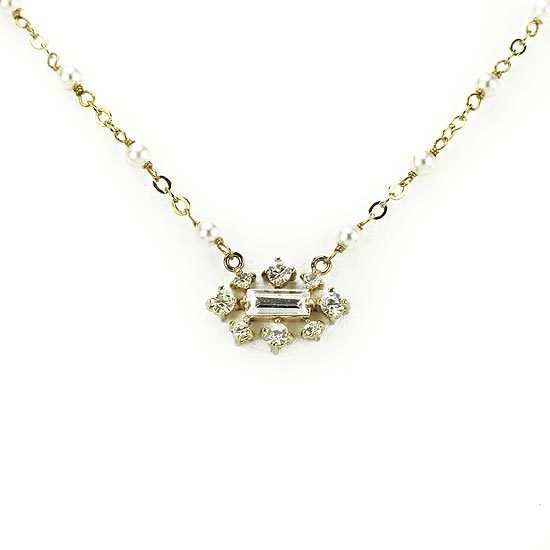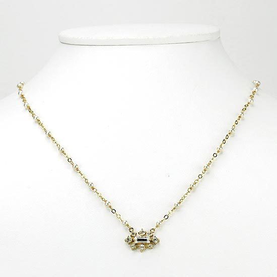 鍊身以水晶珍珠妝點,墜飾採用不同大小水晶組合而成,簡單雅緻的設計風格時尚百搭。