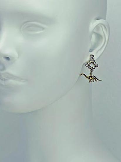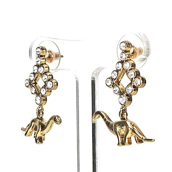耳針為純銀鍍金材質;墜飾為合金材質;水晶採用Crystallized-施華洛世奇元素;耳環總長為1 1/4英吋;長頸龍墜飾尺寸為1/2英吋 ×1英吋
