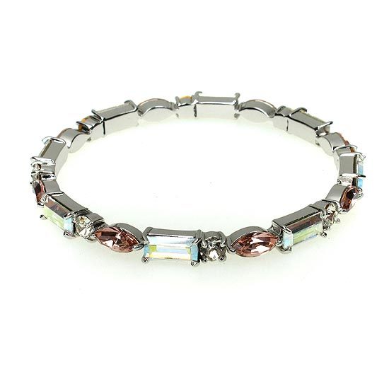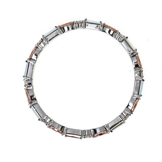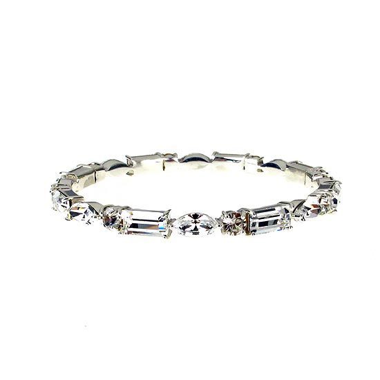 純銀材質;水晶部分採用Crystallized-施華洛世奇元素;手環內徑為2 1/4英吋;環身厚度為5mm;方形水晶尺寸大小為5mm × 10mm;貓眼形水晶尺寸大小為5mm × 9mm;圓形水晶直徑大小為5mm