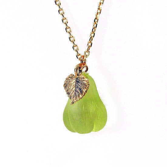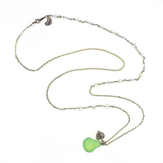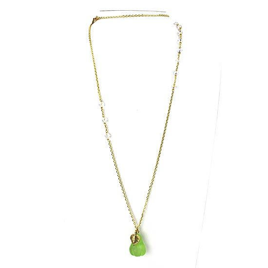項鍊鍊身飾以水晶珠點綴,墜飾以樹脂材質的酪梨搭配葉片墜飾,獨具質感。