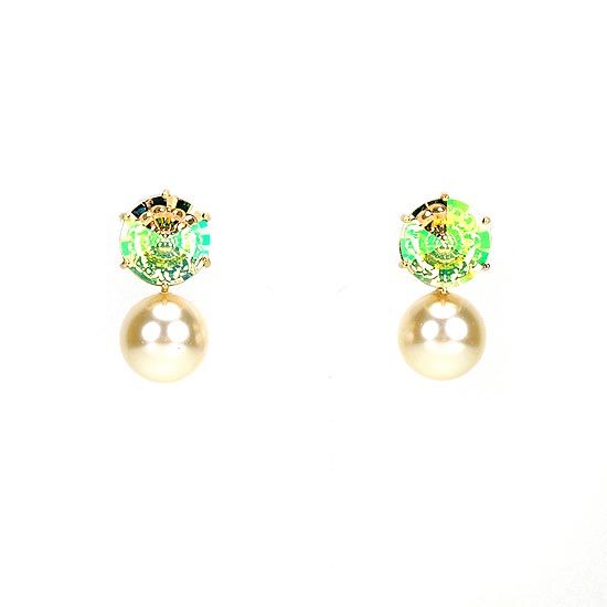 晶透的亮彩水晶,內有花形切割,搭配優雅珍珠墜飾,配戴起來華麗甜美!