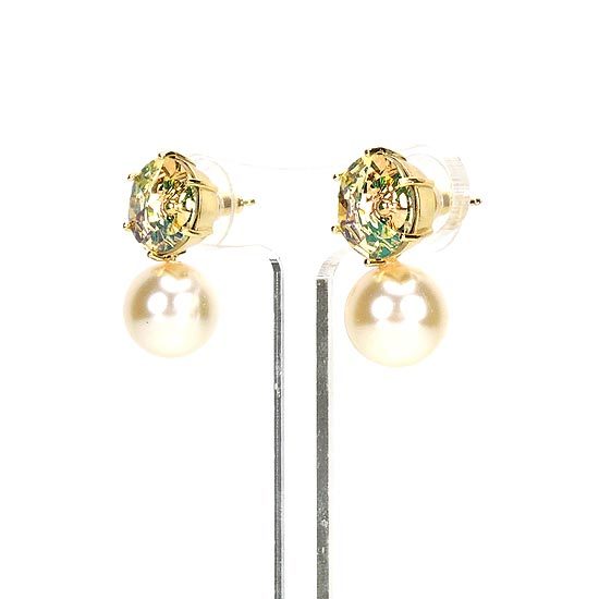 耳針為純銀鍍18K金材質;水晶耳環座台為合金鍍18K金材質;水晶及水晶珍珠部分採用Crystallized-施華洛世奇元素;耳環總長為 3/4 英吋;水晶直徑為12mm;水晶珍珠直徑為12mm