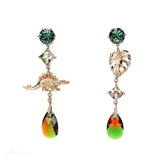 耳針為純銀鍍金材質;墜飾為合金材質;水晶採用Crystallized-施華洛世奇元素;劍龍墜飾尺寸為10mm × 25mm