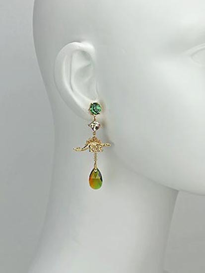 六爪鑲水晶搭配的劍龍墜飾及奇幻色彩的水晶吊墜,呈現綺麗的渡假風情!