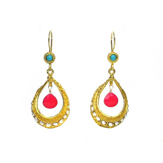 精緻的做工搭配多種半寶石,現代中融合異國傳統風情的耳環,呈現華麗色彩的民俗風!