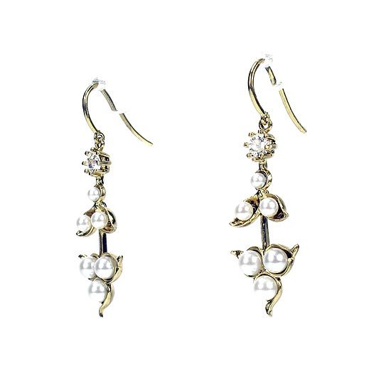 耳針為純銀鍍金材質;墜飾為合金材質;水晶及水晶珍珠部分採用Crystallized-施華洛世奇元素;耳環總長為1 5/8英吋;大水晶珍珠尺寸為4mm ×4mm;小水晶珍珠尺寸為3mm× 3mm