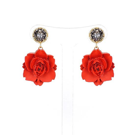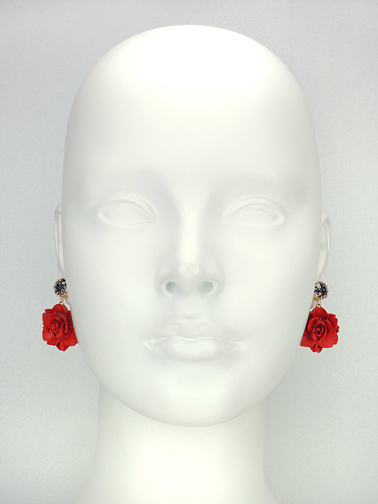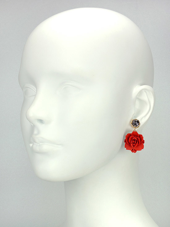 耳環總長尺寸為1 3/4英吋;薔薇墜飾直徑為1英吋。