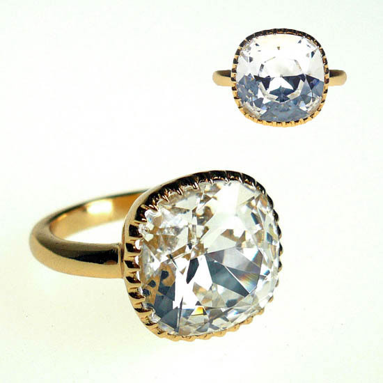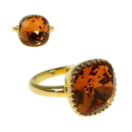 以12mm×12mm方型swarovski水晶密爪鑲設計而成的戒指。