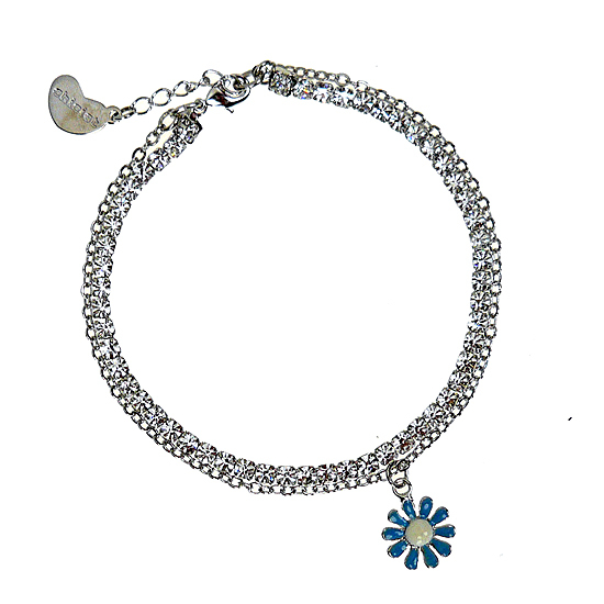 帶著夏日清新慵懶風情的花朵腳鍊,腳鍊採雙鍊設計,以合金鍊搭配SWAROVSKI水晶鑽鍊,並綴有鍍上琺瑯材質的花朵墜飾,清爽亮眼的花朵腳鍊,在您的腳踝上展現俏麗甜心的迷人風采!