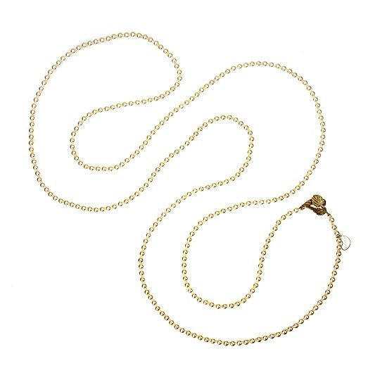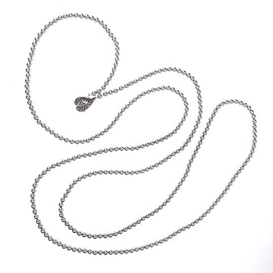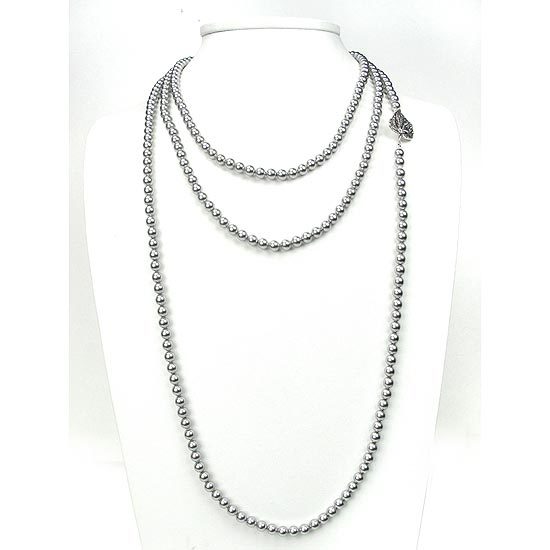 鍊身由水晶珍珠串連而成,項鍊末端飾以雅緻的葉片扣環設計,可依配戴者喜好與其他項鍊做多層次搭配,亦可繞成兩至三圈配戴,風格多變且實搭性高的水晶珍珠項鍊,是永不退潮流且女孩必備的時尚百搭單品。