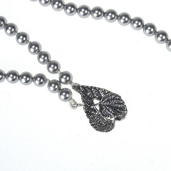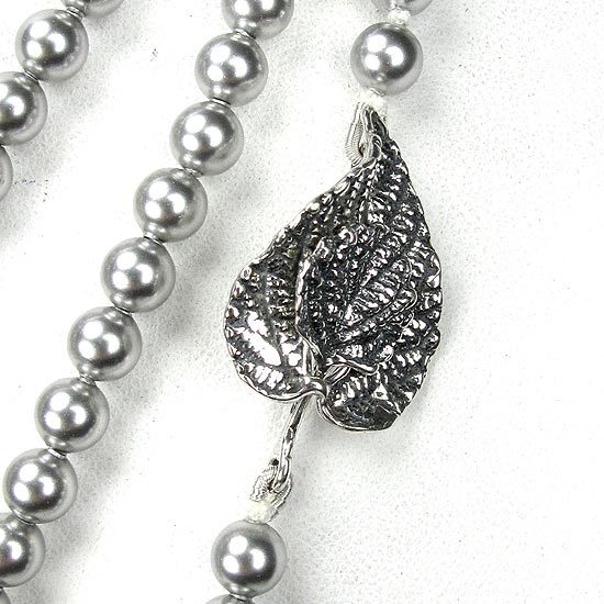 水晶珍珠部分採用Crystallized-施華洛世奇元素;葉片扣環為純銀材質;項鍊總長為63英吋