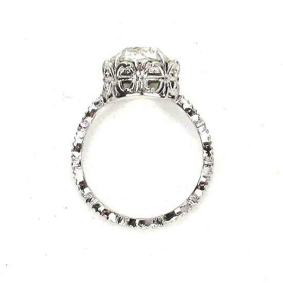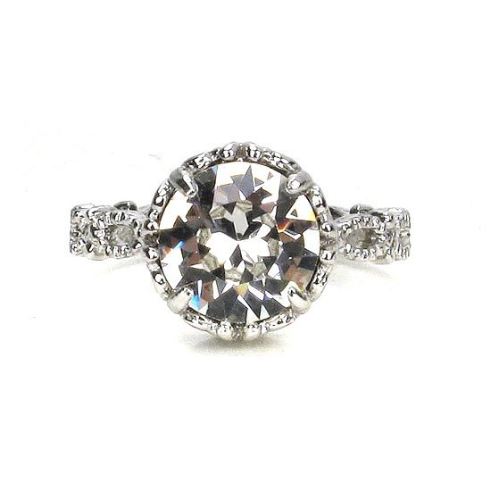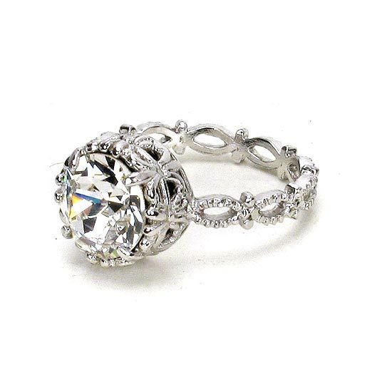 細緻的古典花邊戒指,搭配四爪鑲圓形水晶的鳶尾花樣圖騰座臺,呈現精緻璀璨的法式風尚質感,亦可與其他戒指作搭配更顯個人風格、獨具特色!