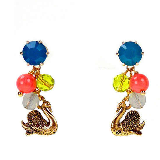 以合金材質的天鵝墜飾,搭配珊瑚色玉石、SWAROVSKI水晶,展現純真、柔美的迷人風情。