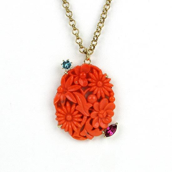 精緻鍊身,搭配鮮豔的古董雕花墜飾,並以馬眼形及圓形水晶點綴,亮眼的配色使人感受熱情的夏日氛圍。