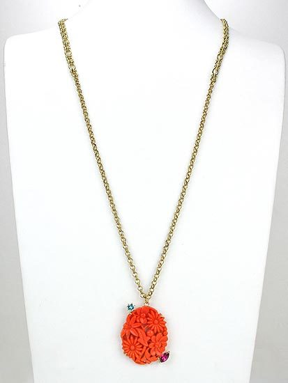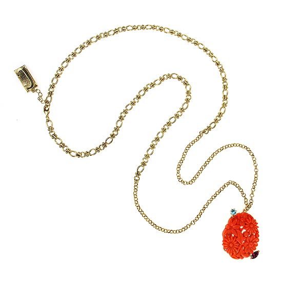 手工鍊身及墜飾為合金材質;水晶採用Crystallized-施華洛世奇元素;項鍊總長約為30英吋;延長鍊總長為3/4英吋;墜飾尺寸大小為30 mm×35mm;古董雕花墜飾為60年代古董樹脂