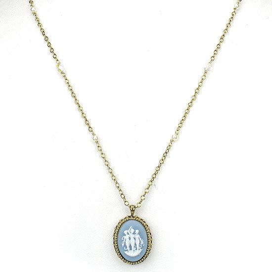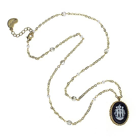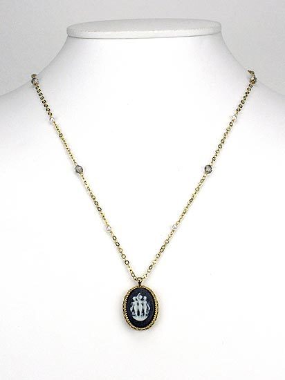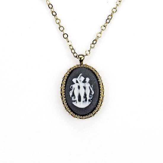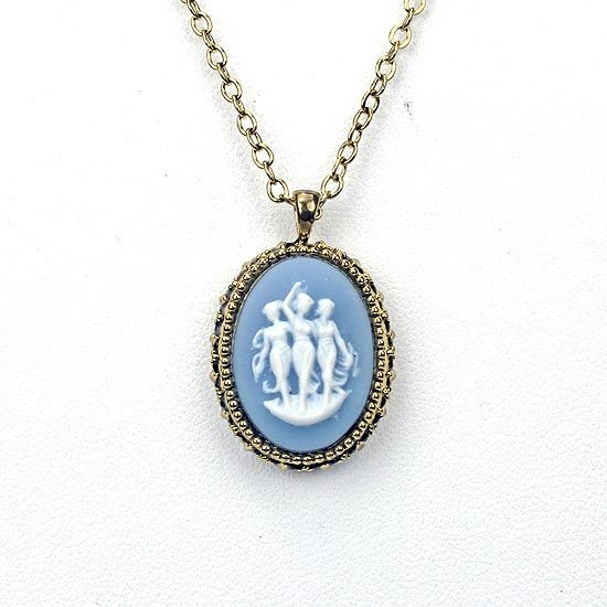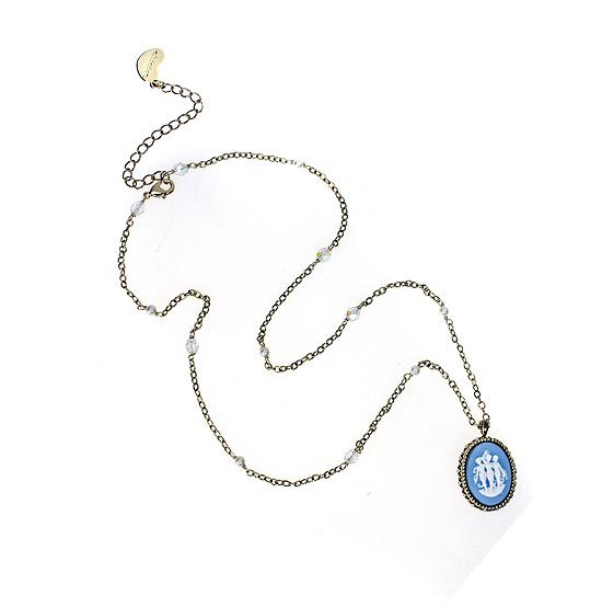 項鍊墜飾為手工的女神浮雕,鑲以古典細膩感的墜飾座臺,鍊身飾以珍珠及琉璃珠點綴,添增甜美氣質。
