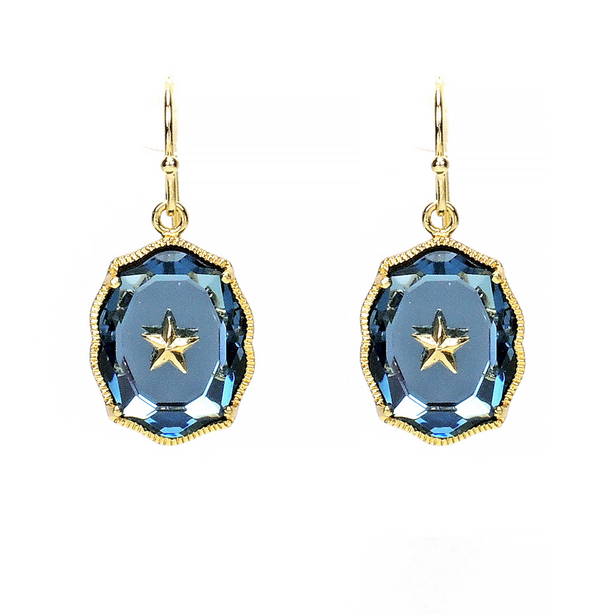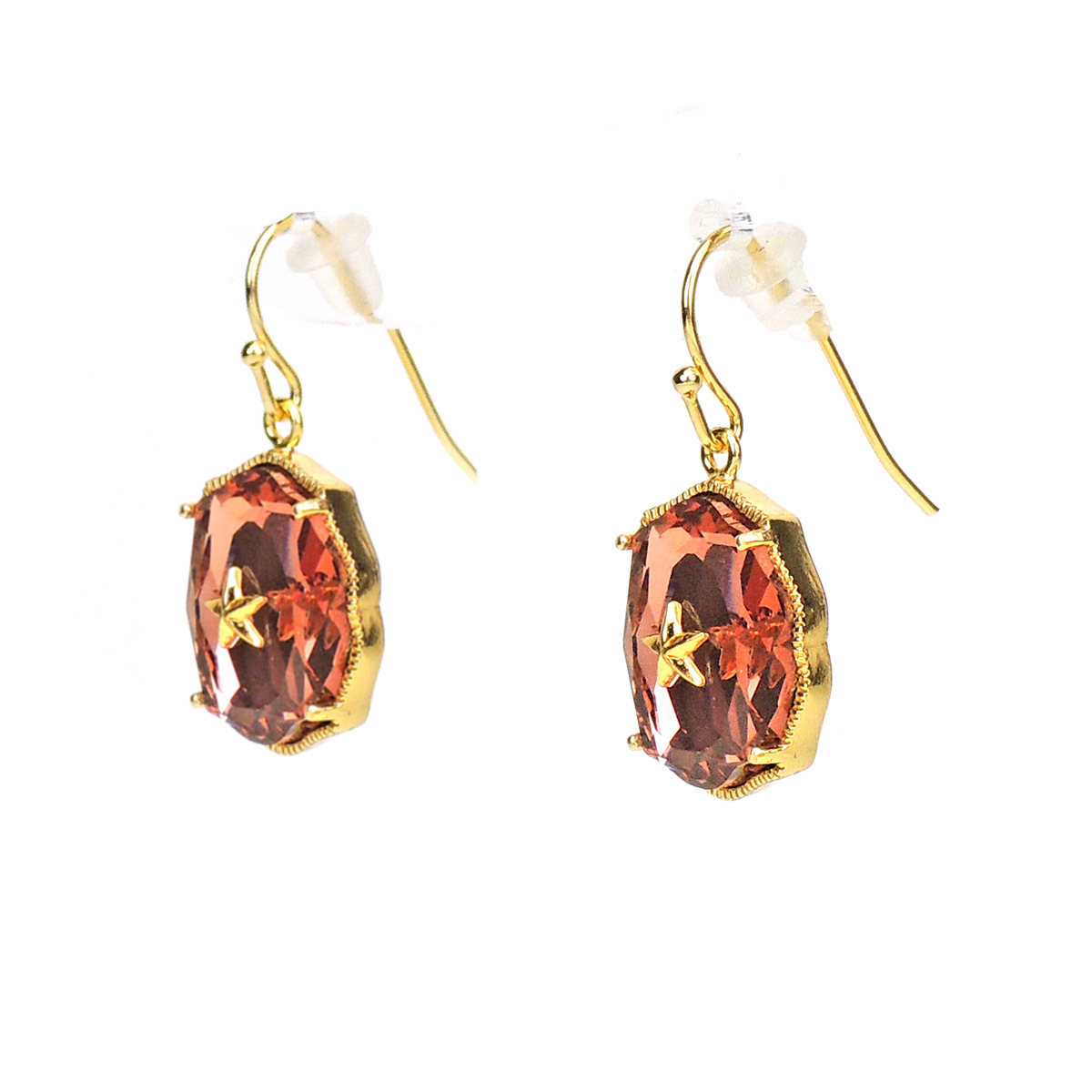 耳針為純銀鍍18K金材質;耳環金屬部分為合金鍍18K金材質;水晶材質採用Crystallized-施華洛世奇元素;耳環總長為 1英吋。