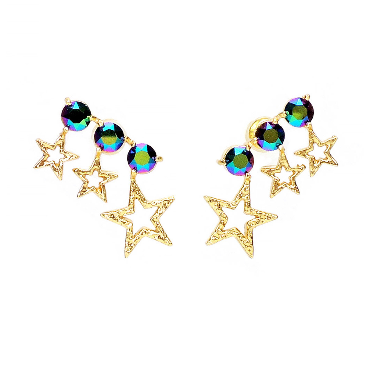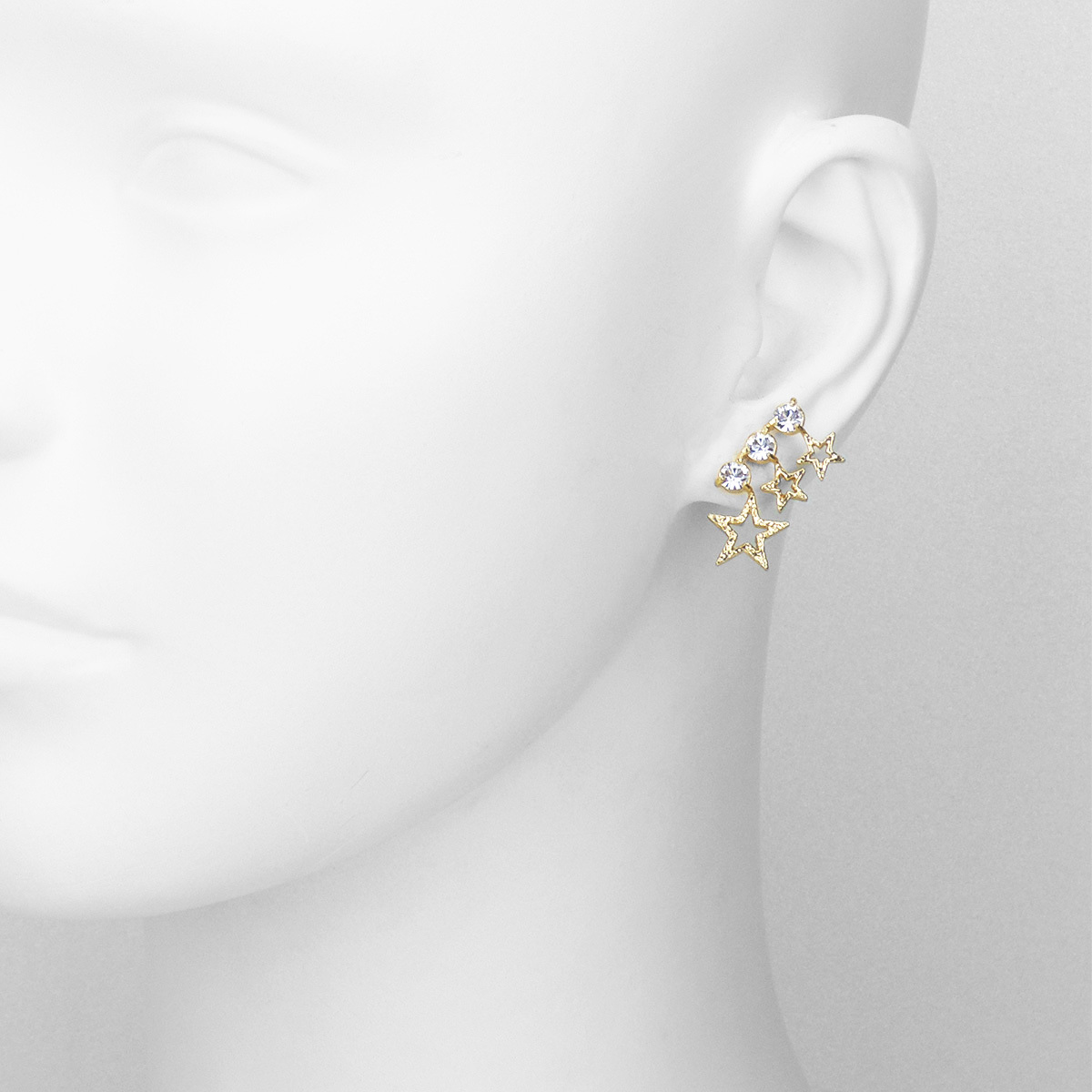 計劃在夢想中生根,發掘命定的小金星…。順著耳垂的弧度延伸的小星星耳針,串連著閃耀水晶,代表著夢想與實現。佩戴起來俏皮又有個性,充滿時尚風情。