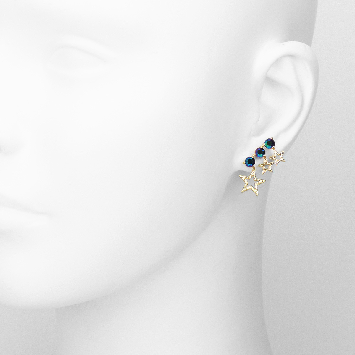 順著耳垂的弧度延伸的小星星耳針,串連著閃耀水晶,代表著夢想與實現。