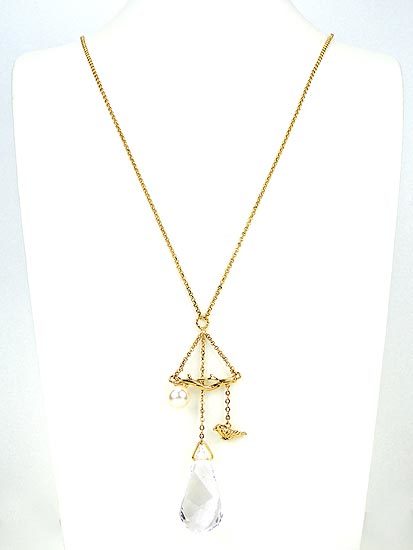 、 細緻的鍊身搭配優雅的水晶珍珠以及精緻獨特的樹枝,並垂墜和平鴿墜飾以及璀璨水晶,甜美活潑又帶有浪漫氣息的長項鍊,十分好搭配,亦可單獨配戴或與其他項鍊做層次的變化。