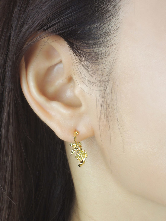 耳環以玫瑰花藤的造型做為設計,細緻浪漫的不對稱玫瑰花藤耳環,配戴起來清新迷人!不論正式或休閒都非常適合配戴。