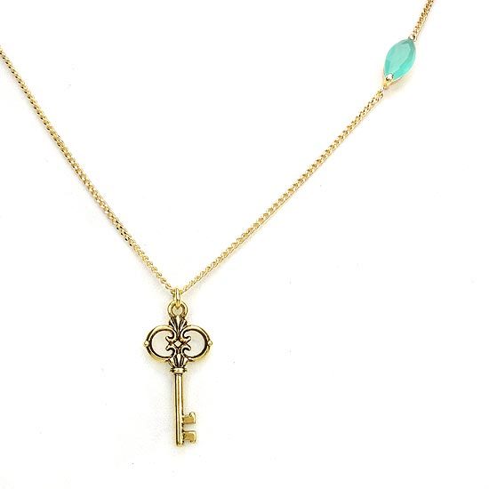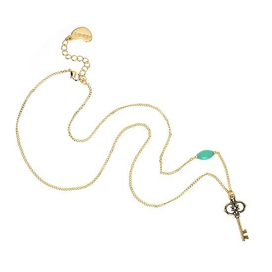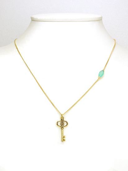幸運鑰匙,祈願好運連連~ 精緻典雅的古典鑰匙墜飾 搭配著貓眼形的湖水綠水晶,古典與甜美兼具,不容錯過! 可單獨配戴或與其他項鍊做層次的變化。