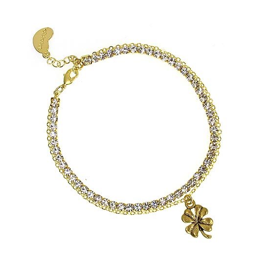 腳鍊採雙鍊設計,以合金鍊搭配SWAROVSKI水晶鑽鍊,並綴有合金材質的幸運草墜飾,甜美秀氣的幸運草腳鍊,在您的腳踝上散發迷人女性魅力!