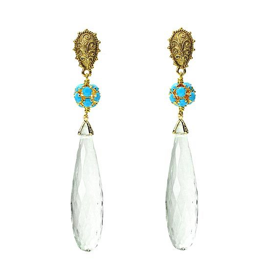 耳針以帶有埃及文化的壁畫圖騰設計,結合土耳其色水晶球及水滴型壓克力墜飾。