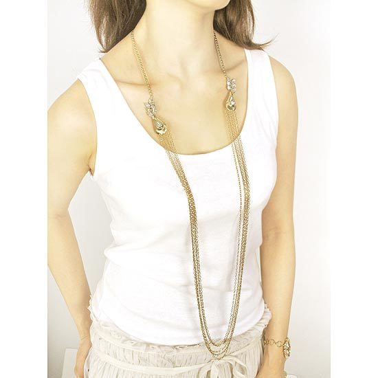 以眼鏡蛇眼造型與貓眼形水晶排列結合而成的造型墜飾,搭配多層次鍊身設計,展現女人神秘、性感的魅力!