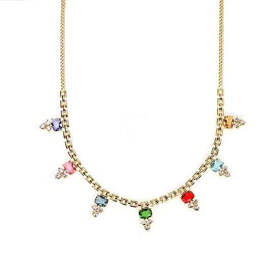 七彩各色水晶,搭配精緻手工鍊身的項鍊,配戴起來充滿朝氣且優雅時尚!可單一配戴亦可與其他項鍊做層次的搭配!