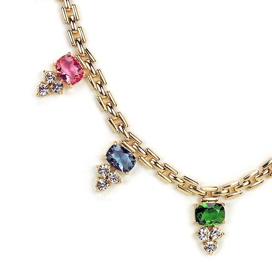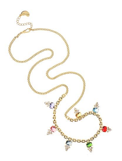 墜飾與鍊身為合金鍍18K金材質;水晶部分採用Crystallized-施華洛世奇元素;鍊子總長為25 1/2英吋;延長鍊尺寸為1 1/2英吋;方形水晶尺寸為18mm×5mm;透明圓形水晶直徑為4mm