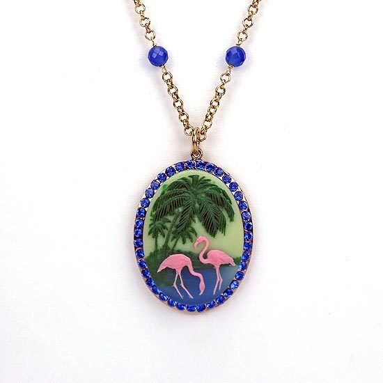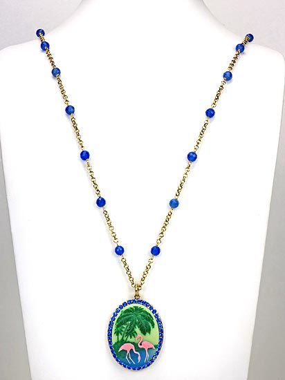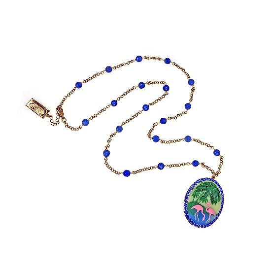 鍊身以藍瑪瑙妝點,搭配南國風情的浮雕墜飾,周圍以亮眼的水晶點綴,精緻細膩的華麗渡假風!隨意搭配休閒的牛仔褲就獨特有型。