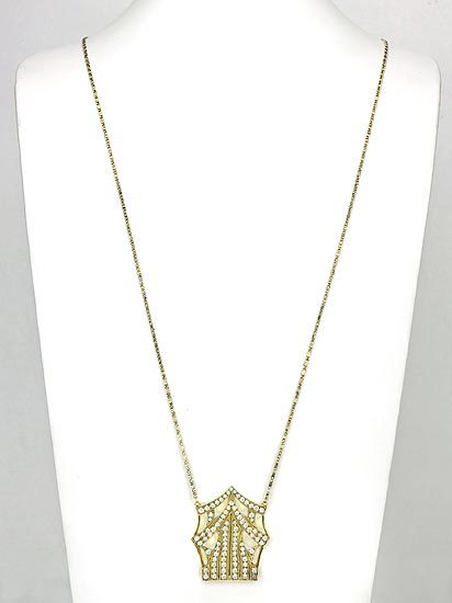 鍊身及墜飾為合金材質;項鍊總長28英吋;墜飾尺寸約為1 1/4英吋×1 1/2英吋