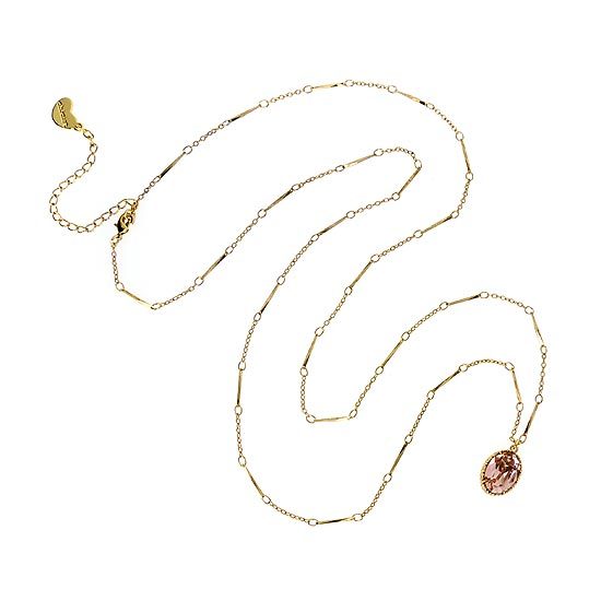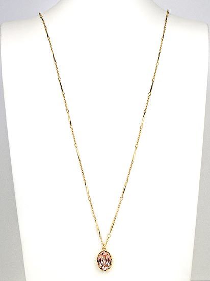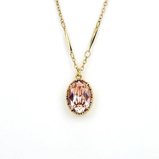 復古色調的手工鍊身,搭配爪鑲蜜桃色水晶墜飾,鳶尾花樣圖騰鑲臺,浪漫雅緻的復古風!經典百搭的法式風尚項鍊,也適合與其他項鍊搭配層次,更加細膩優雅!