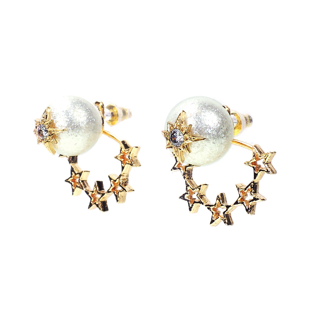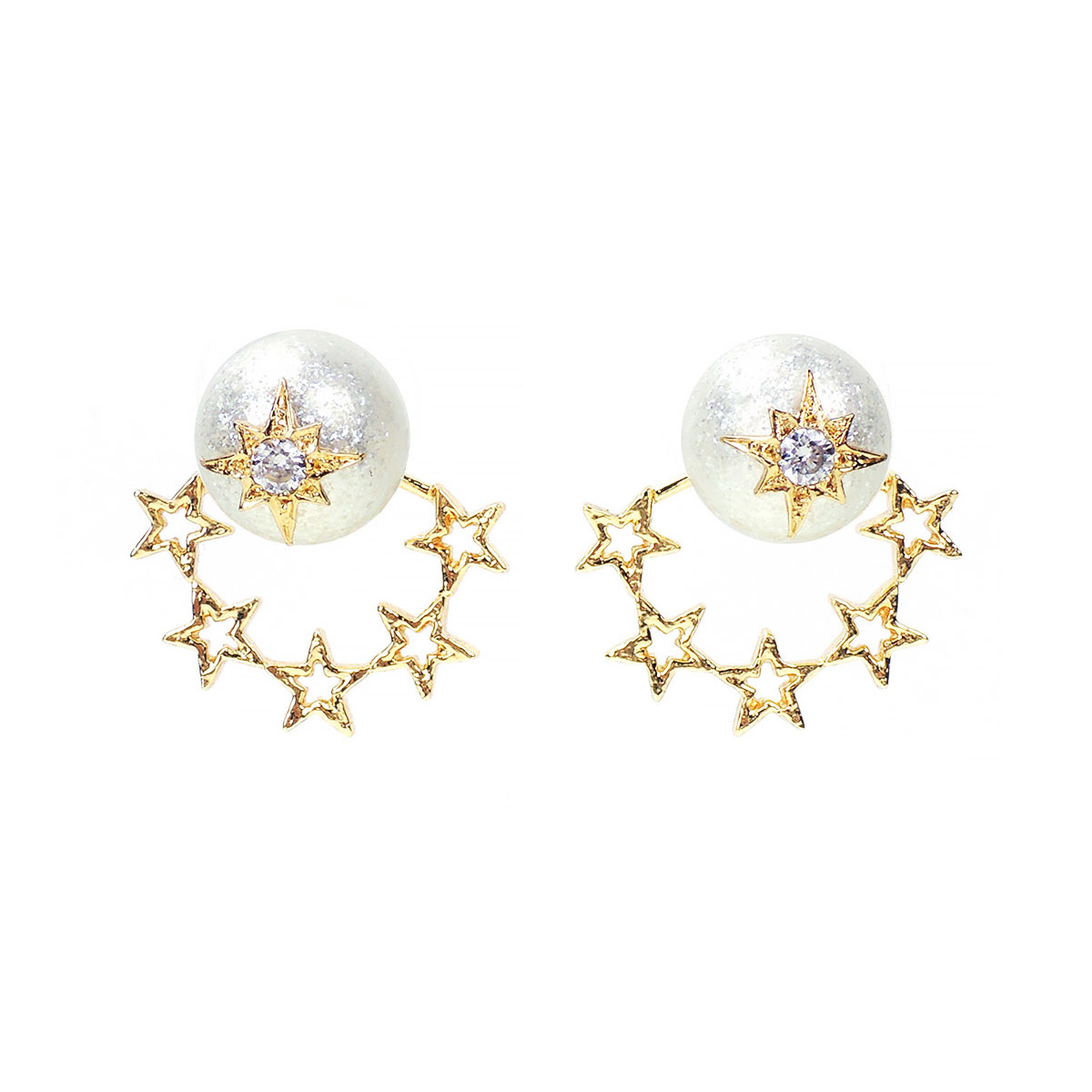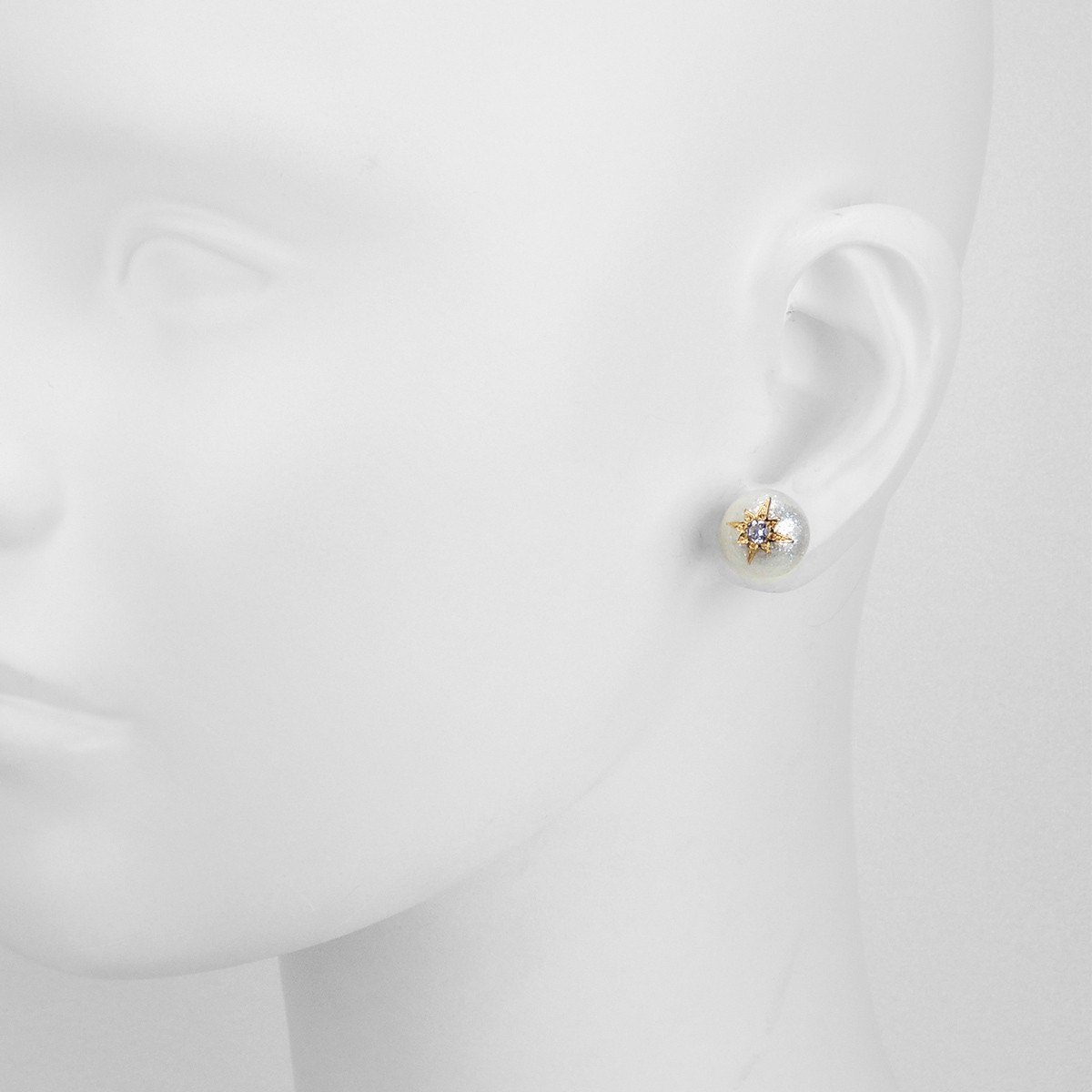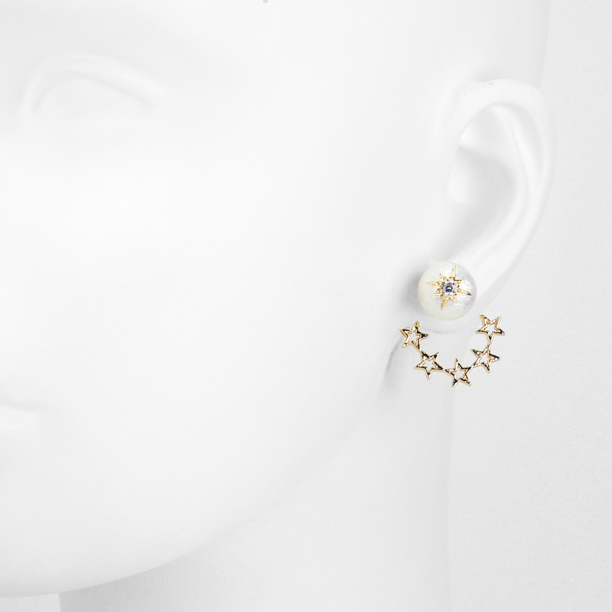 星砂珍珠耳環,搭配小星星連接的後座造型,表現行星的意象,帶著優雅的前衛風格。