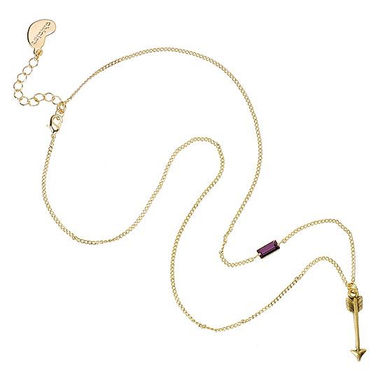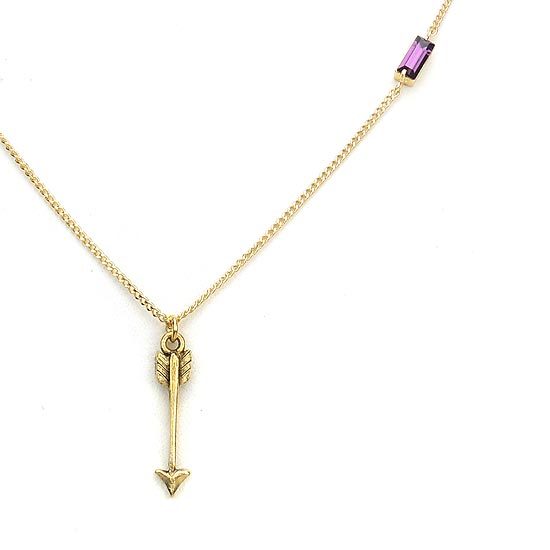 愛神的箭,串連妳我心扉~。 精緻的愛神之箭墜飾,搭配長方形水晶墜飾的鍊身,俏皮可愛! 讓愛連結屬於你的她! 可單獨配戴或與其他項鍊做層次的變化。 愛神之箭墜飾為合金鍍古董金材質,鍊身與墜飾座臺皆為合金鍍18k金材質.