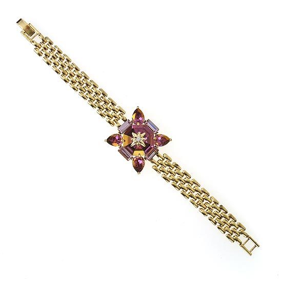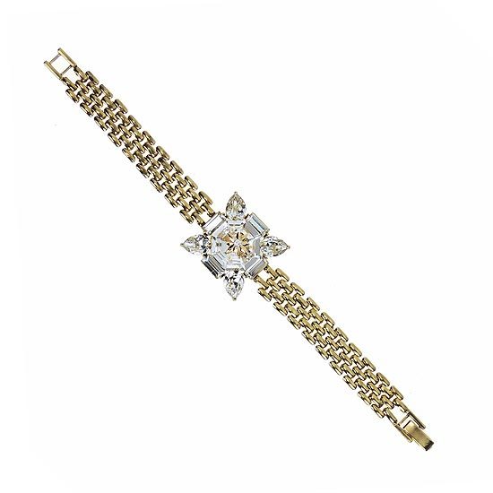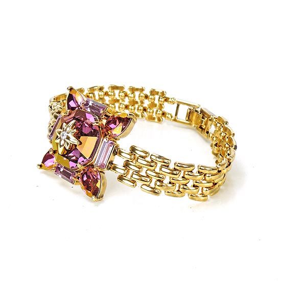 鍊身及鑲台為合金材質;水晶部分採用Crystallized-施華洛世奇元素;手鍊總長為6英吋;水晶墜飾大小約為22mm X 22mm