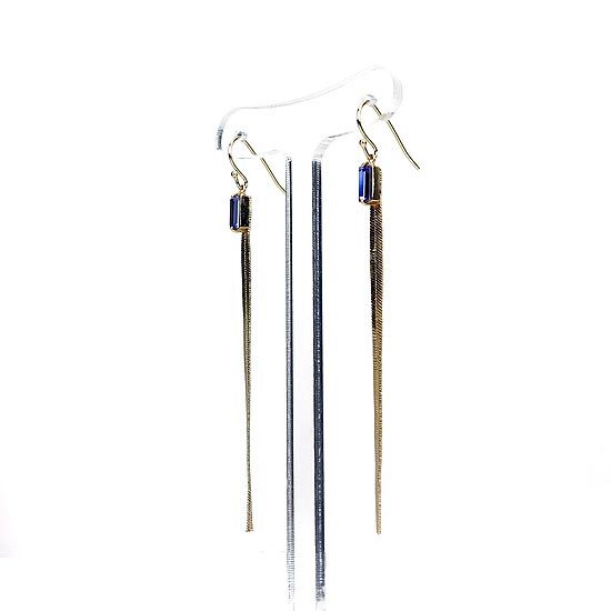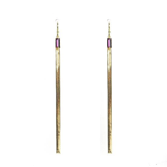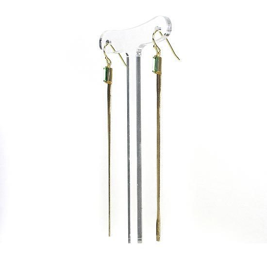 耳針飾以T形爪鑲水晶,並搭配細長型金屬線條,優雅迷人,精緻的線條完美呈現出女性風情,且相當好搭配。