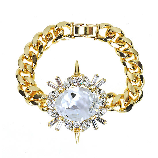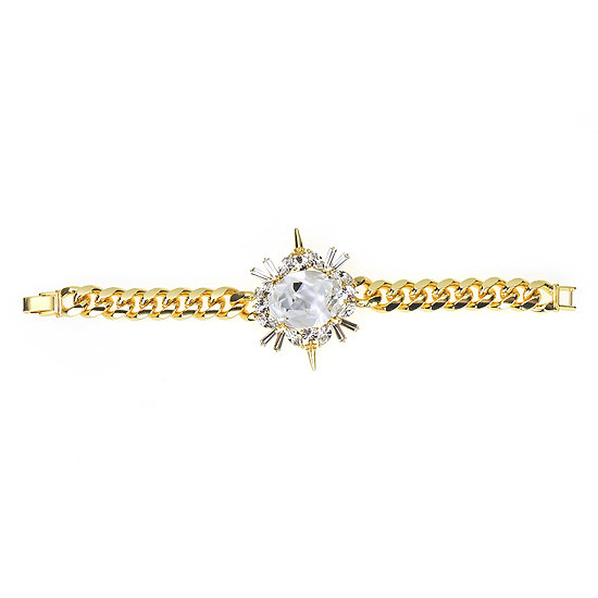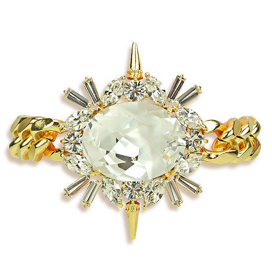 華麗的水晶切割,搭配放射狀鉚釘座臺墜飾,充滿迷人又帥性的風采!