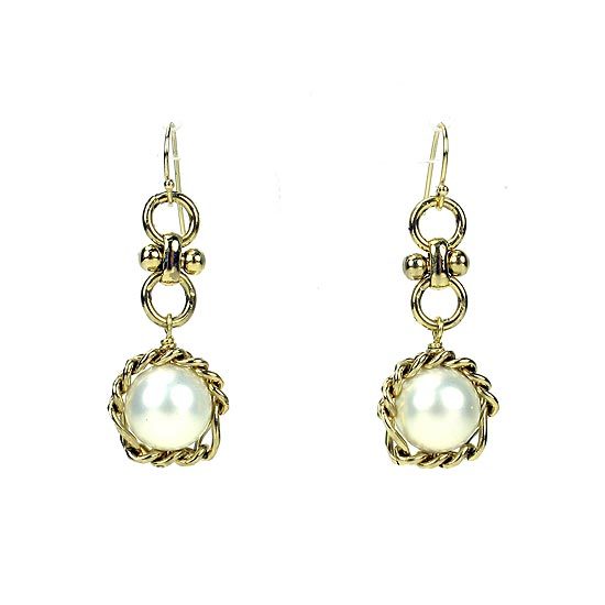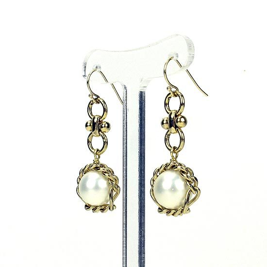 耳環以手工鍊,搭配珍珠墜飾增添浪漫古典感,整體配戴起來摩登典雅!