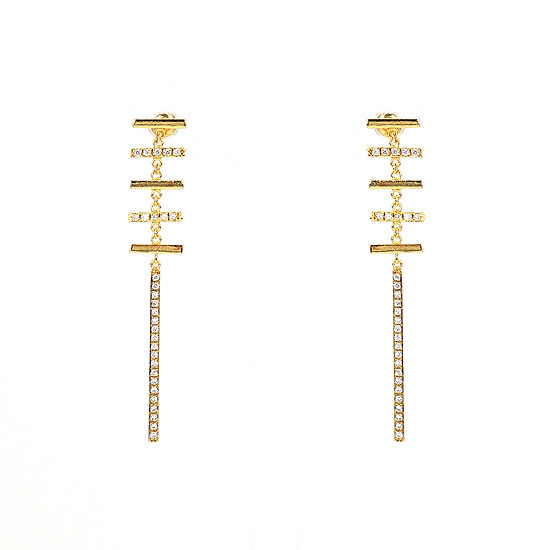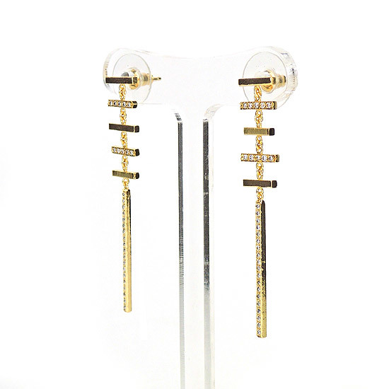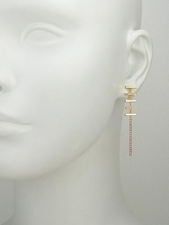 金屬線條組合而成的律動感耳環,飾以鑲嵌鋯石,簡約典雅又迷人,是不容錯過的時尚單品,無論休閒或正式都能搭配。