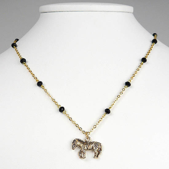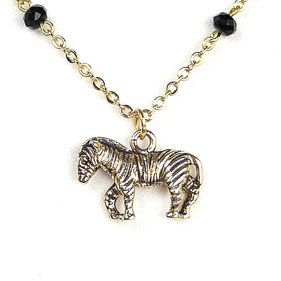 鍍金斑馬墜飾,合金鍊身點綴有黑色瑪瑙墜飾。