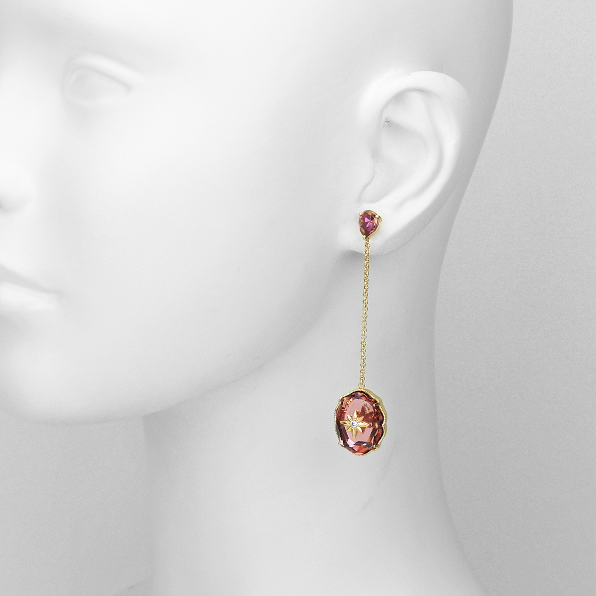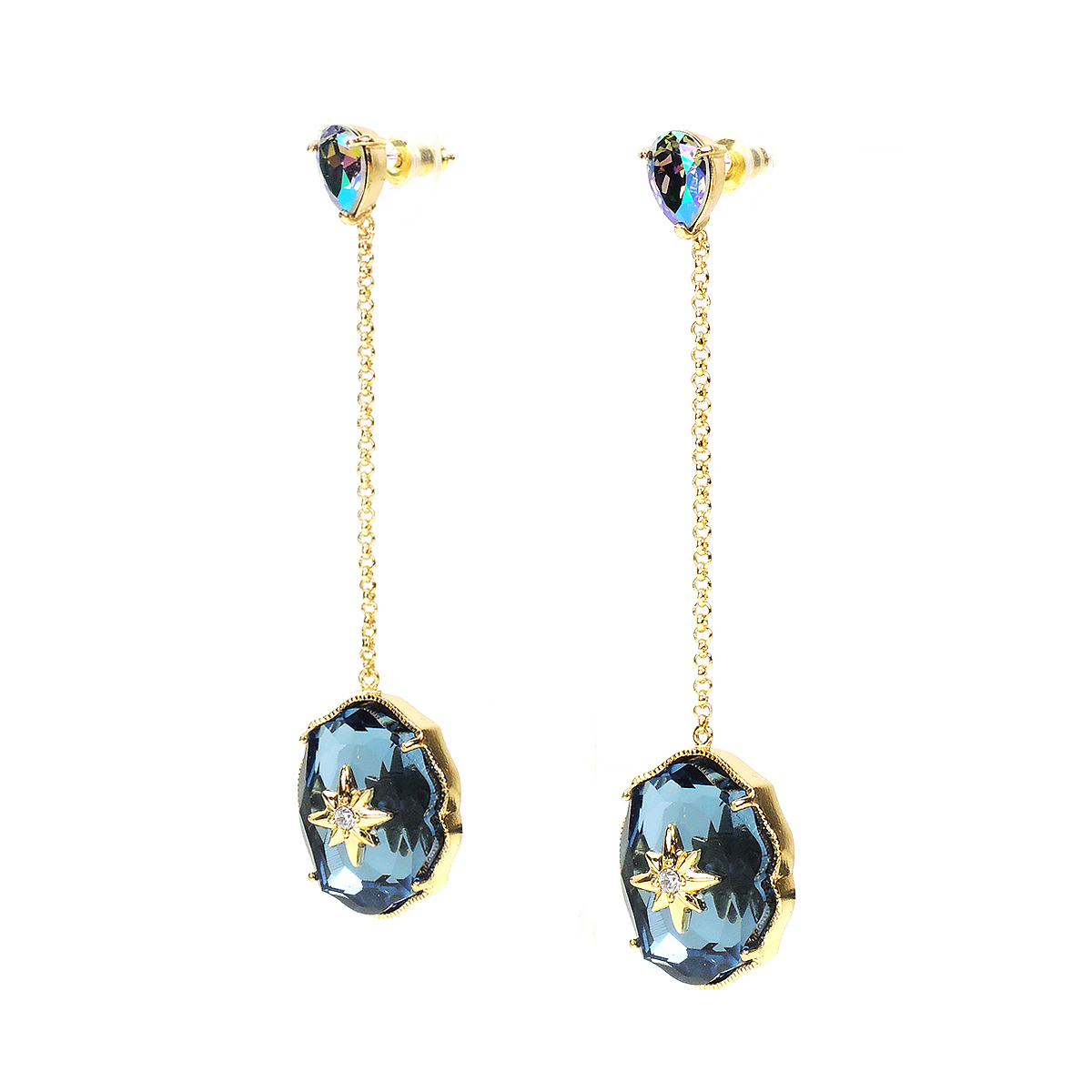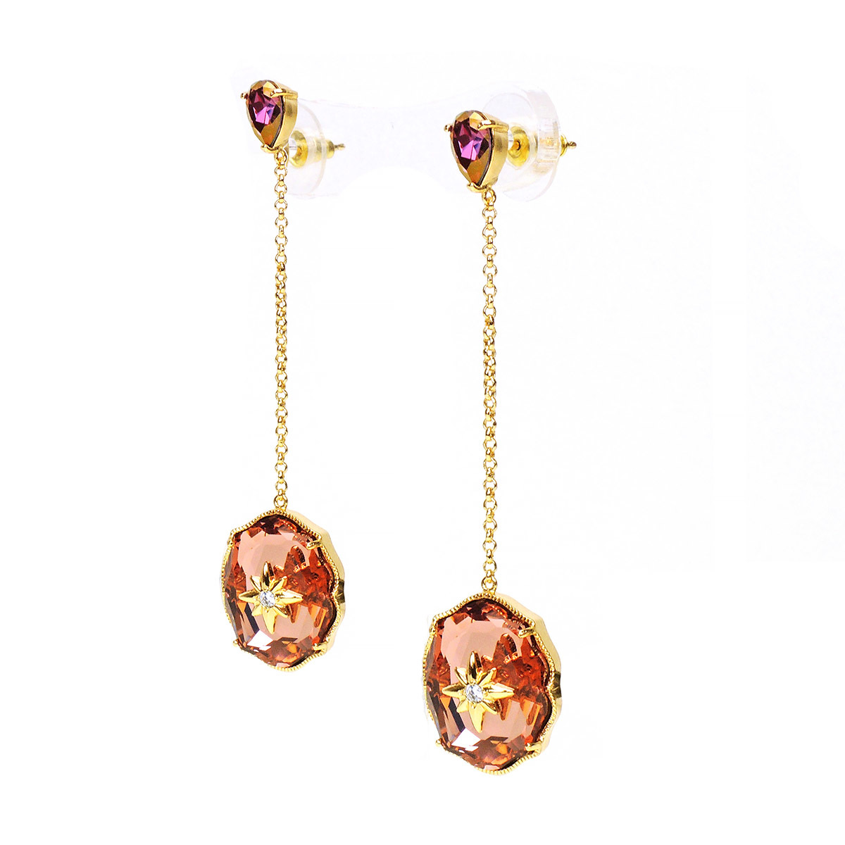 耳針為純銀鍍18K金材質;耳環鍊身合金鍍18K金材質;墜飾金屬合金鍍18K金材質;水晶材質採用Crystallized-施華洛世奇元素。;耳環總長為2 1/2 英吋。