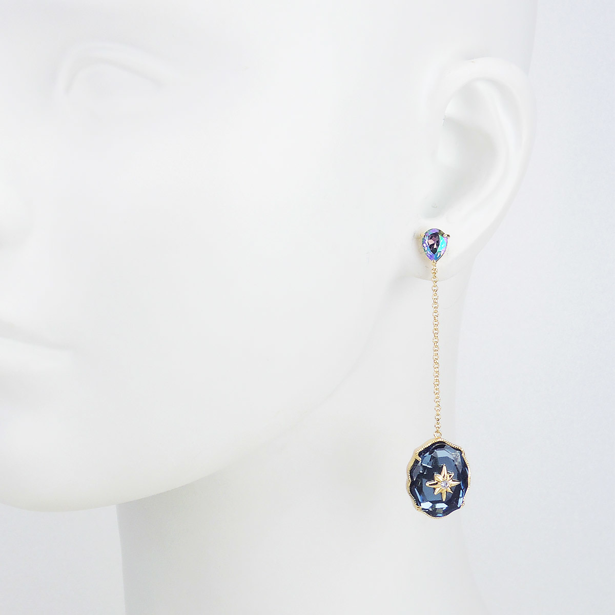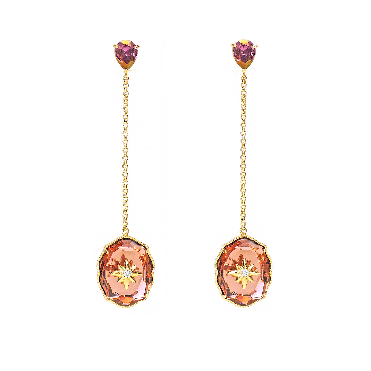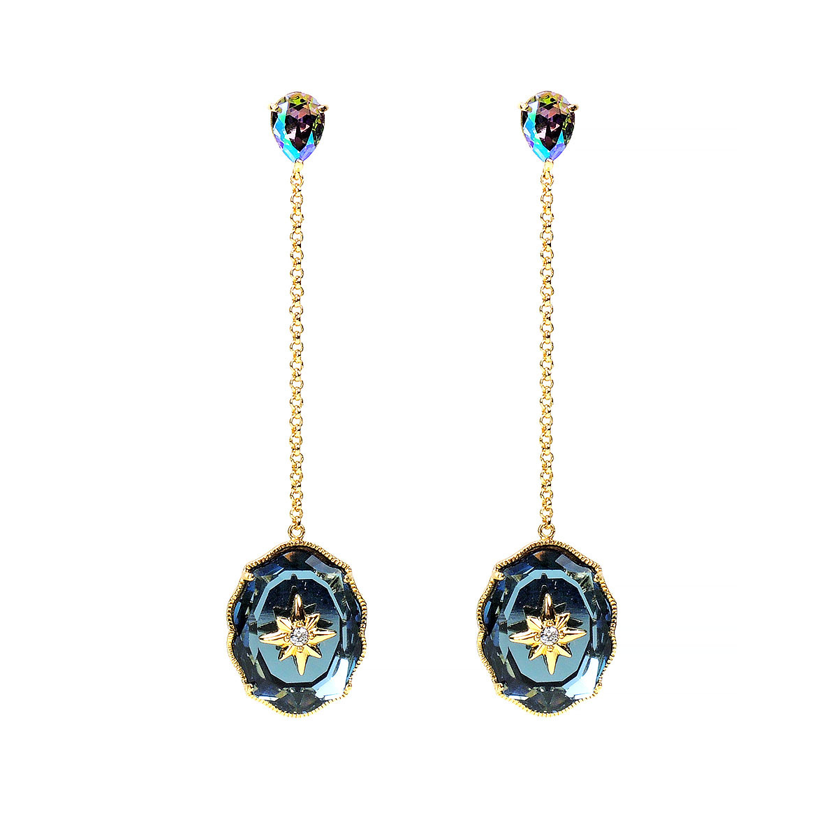 耳針為純銀鍍18K金材質;耳環鍊身合金鍍18K金材質;墜飾金屬合金鍍18K金材質;水晶材質採用Crystallized-施華洛世奇元素。;耳環總長為2 1/2 英吋。