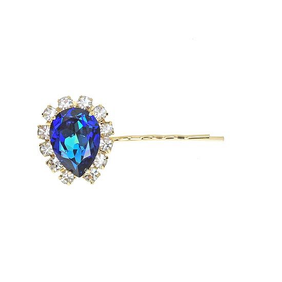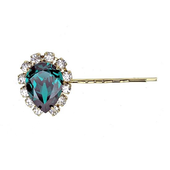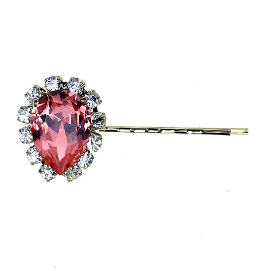 髮夾飾以水滴形水晶,晶瑩剔透的水晶隨光線反射出耀眼光芒,可隨個人喜好別戴,大方別緻的設計,佩戴上吸引眾人目光。