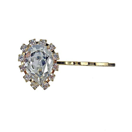 髮夾飾以水滴形水晶,晶瑩剔透的水晶隨光線反射出耀眼光芒,可隨個人喜好別戴,大方別緻的設計,佩戴上吸引眾人目光。